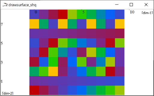 int drawsurface_shq_xpl(){ scltracefa(§, ƒ, ); scltracefc("scl-%s (%s) : %s\n\n", sclver(), sclsec(), temps_char(0)); int ierr = -1; /*int setn=2, seti;*/ int setx[2] = { 10, 9 }; int rown=setx[0], rowi, coln=setx[1]; double **mat = (double **)newtabx(sizeof(double), 2, setx); if (mat==){ scltracerr(§, ƒ, , "mat allocation error!\n"); scltracefe(§, ƒ, ); return ierr; } ierr--; for(rowi=0;rowi<rown;rowi++){ rand(coln, 103*rowi, 1, 10, mat[rowi]); } std::string jsoname=std::string(ƒ)+".json", jsonpath="./srt/"+jsoname; shq::beginDrawing(/*"https://le.shaq.bzh/mon/cahier/de/brouillon", SHQ_GID_MA_C_HAIER, "client-api"*//*jsonpath*/); // <Initializes the 🦅 "connection" shq::newFigure("drawsurface_shq"); // <Creates a new 🦅 figure; shq::drawSurface(rown, coln, mat, 0, 0, 1, 1, shq::Params("colormap","qhult")); shq::axisAuto(); shq::axisEqual("drawsurface_shq"); /*shq::setFigureProperties("drawline_shq", shaqParams("x",0,"y",220,"width",450,"height",100));*/ std::vector<std::string> labels; labels.push_back("[dim-1]"); labels.push_back("[dim-2]"); labels.push_back("[dim-3]"); shq::axisLabels(labels); shq::saveImage("./srt/drawsurface_shq.svg"); shq::endDrawing(); // <Closes the 🦅 "connection" scltracefe(§, ƒ, ); return 0; } /* ƒ décorée par 🔬 le 21-02-2025 14:50:54 */